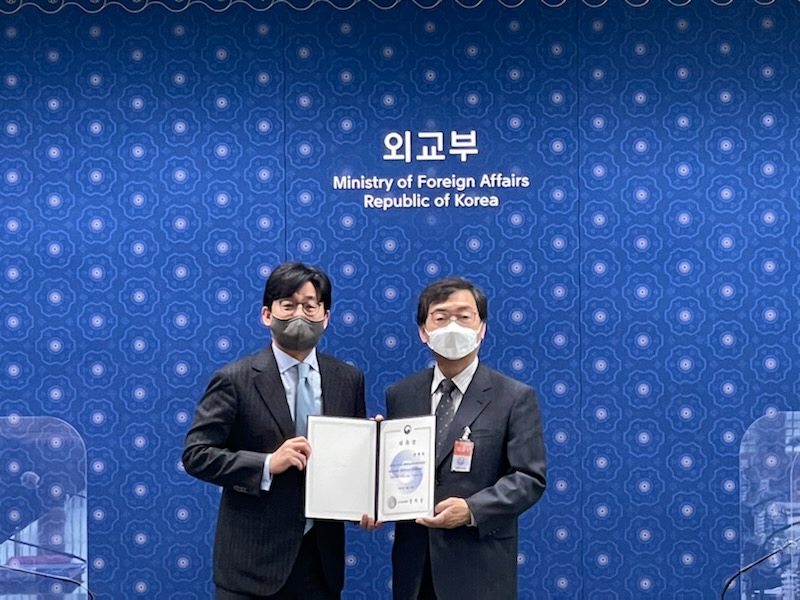 성백린 단장이 외교부 과학기술외교자문위원회 바이오분과위원장으로 위촉됐다. 위촉식은 2022년 3월 22일(화) 외교부에서 개최된 과학기술외교자문위원회 특별회의에서 진행됐다. 과학기술외교자문위원회는 2021년 6월 △과학기술외교정책, △데이터·정보통신·인공지능, △탄소중립, △우주 4개 분과로 발족되었고, 이번 특별회의 개최를 계기로 바이오 분과를 신설했다. 성백린 단장은 국내 백신개발 분야 최고 권위자 중 한 명으로 현재 △범정부코로나19백신전문위원회 위원장, △감염병 R&D 사업단협의체 의장, △국제백신연구소 과학자문위원직을 맡고 있으며 과거, △국가과학기술자문회의 위원, △생물무기금지국제협약 정부대표 등을 역임한 바, 향후 국제보건협력 및 바이오기술 외교 정책 수립에 기여할 것으로 기대된다. |